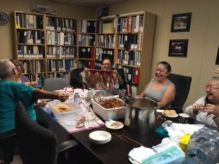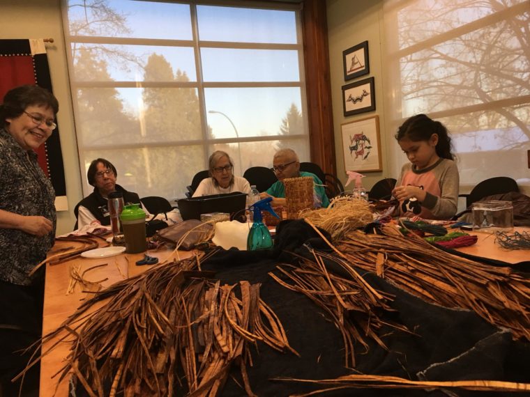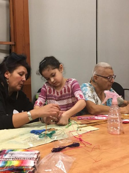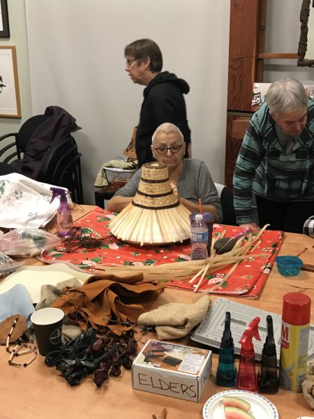 In 2016, the Elders at the Tsleil-Waututh Nation begun a new weaving project with Squamish artist Tracy Williams, building on their knowledge of weaving practices and natural dyes. From 2018-2019 they continued building their weaving skills with mixed media Semiahmoo artist Roxanne Charles. For 2019-20, the group begun a new weaving and puppetry project with Marcie Baker, Sharon Bayly and Michelle Olson, and are currently on pause.