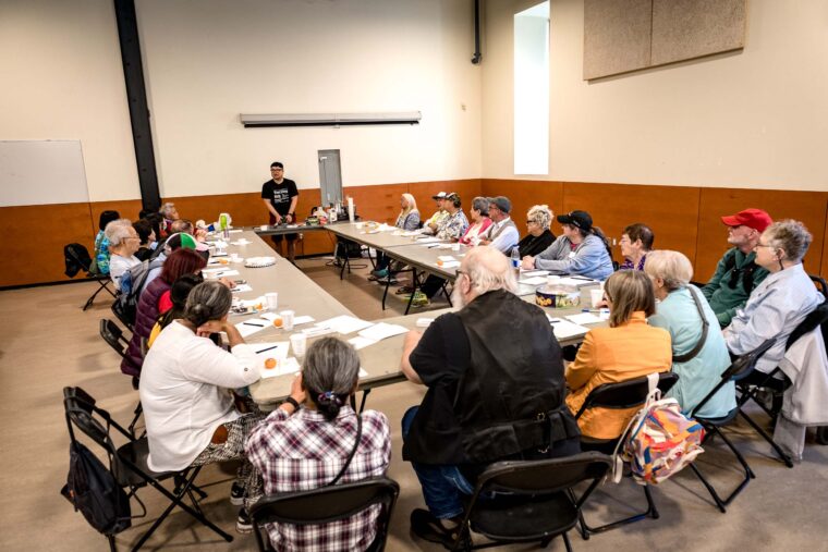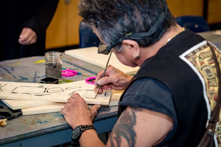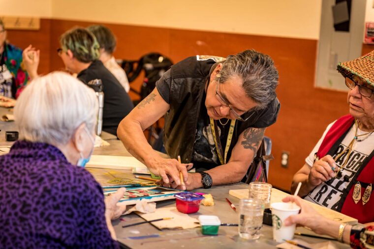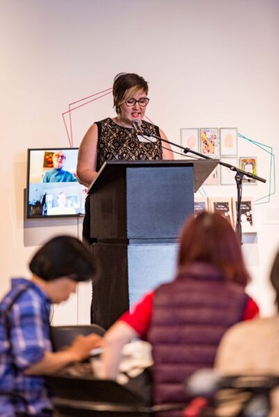 For 2023, we were thrilled to return to an in-person Exhibition and Celebration after three years of pandemic pivots, including workshops and our traditional sit-down lunch. The Exhibition featured artworks made in person, online, over the phone, and snail mail, all offering unique snapshots into the groups’ artistic practices. Congratulations and thank you to all.